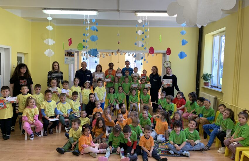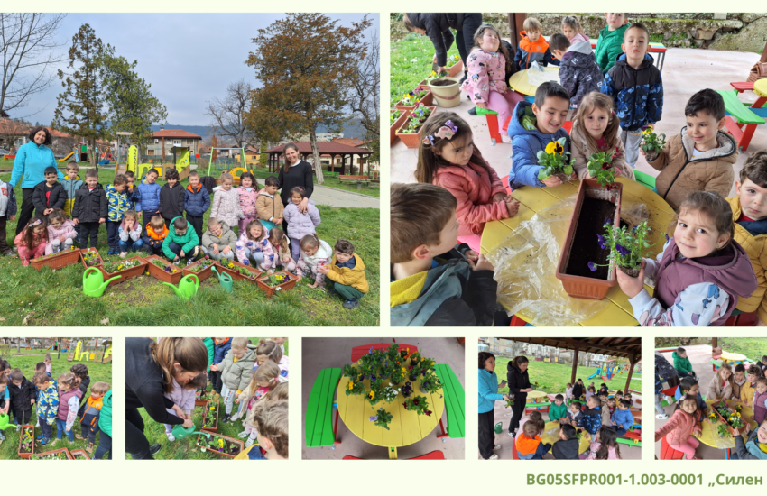 Децата от група „Слънчо“ с много старание, нетърпение и усмивки засадиха красиви пролетни теменужки – подарък от майката на Марио