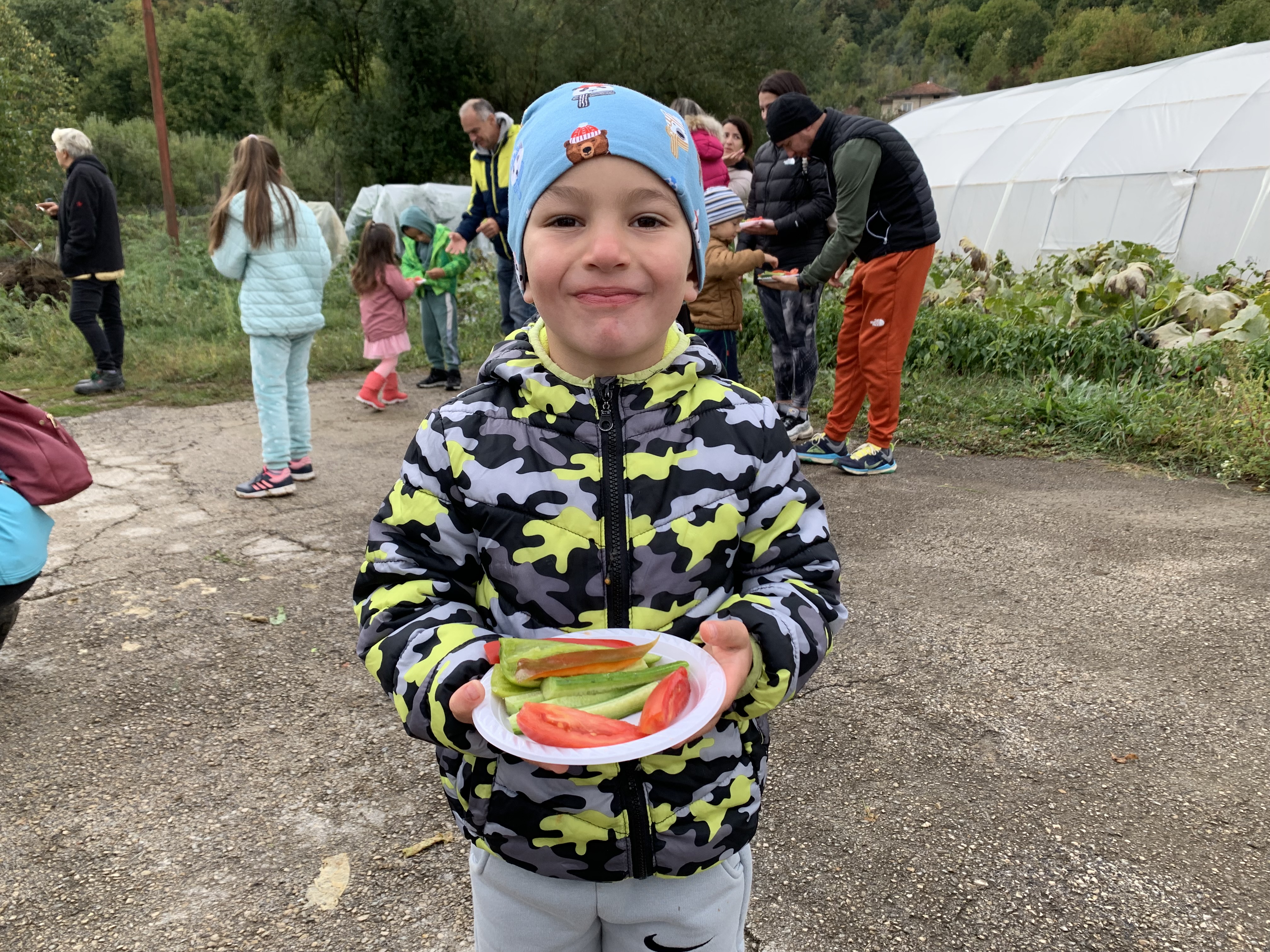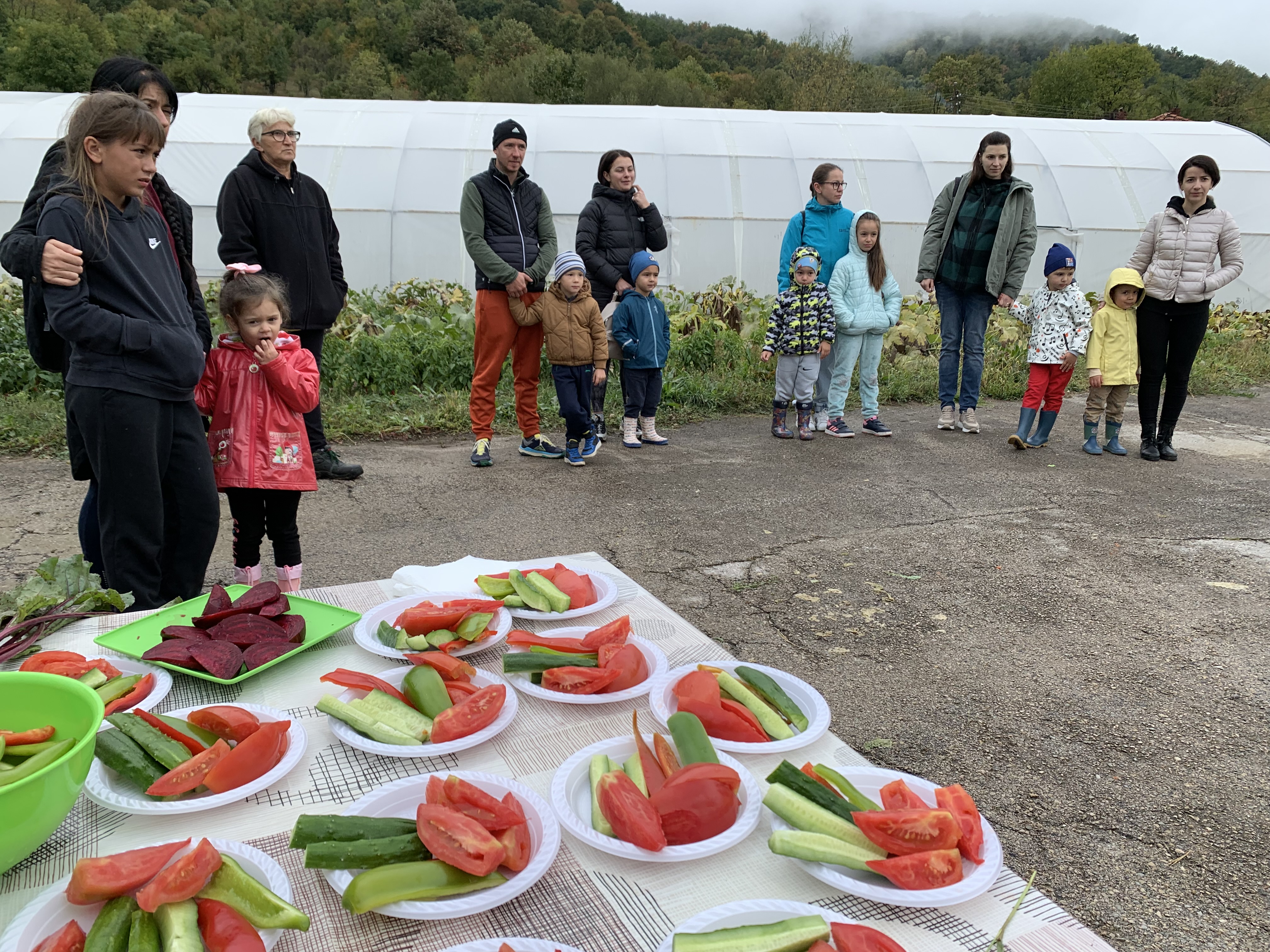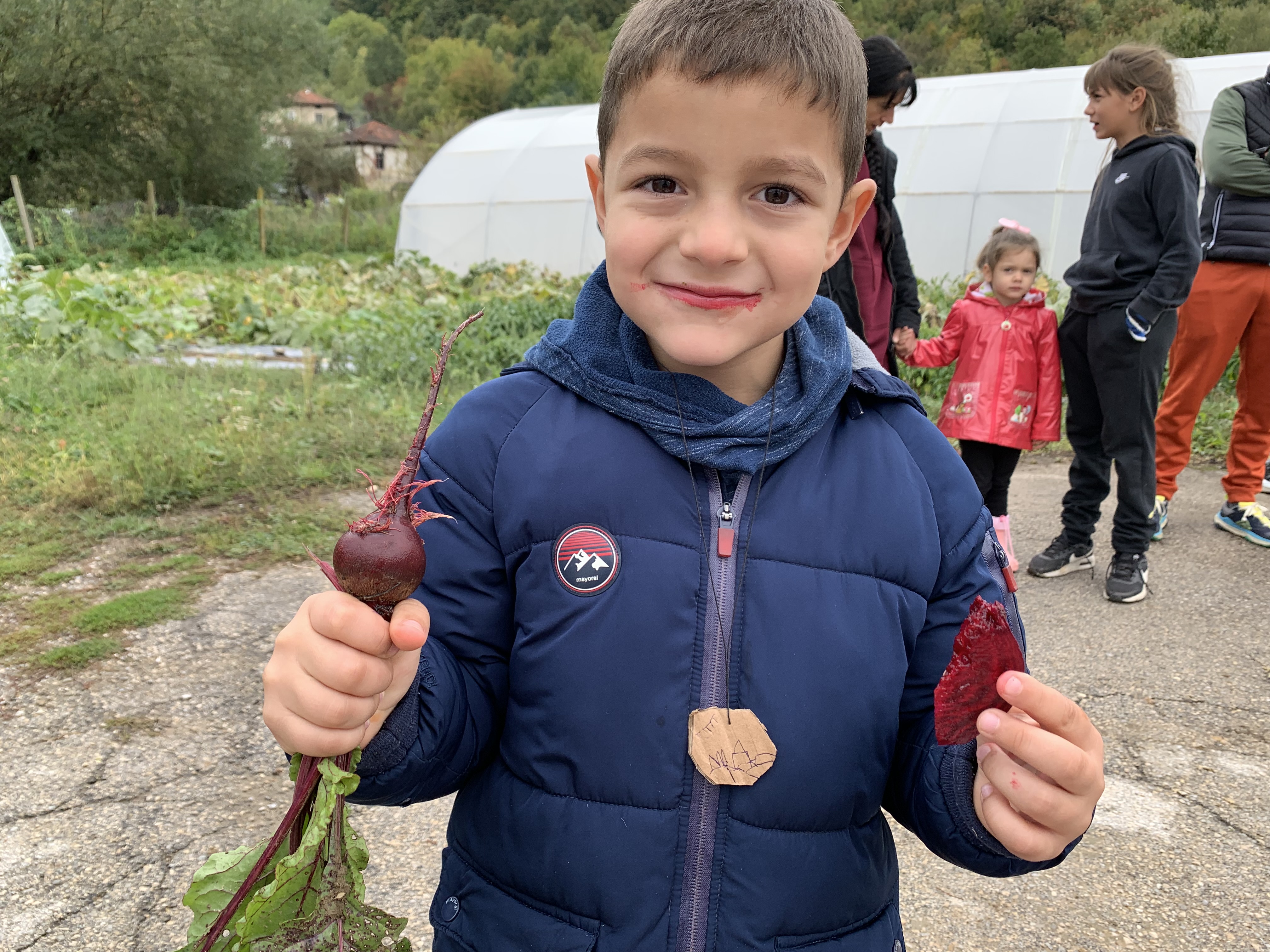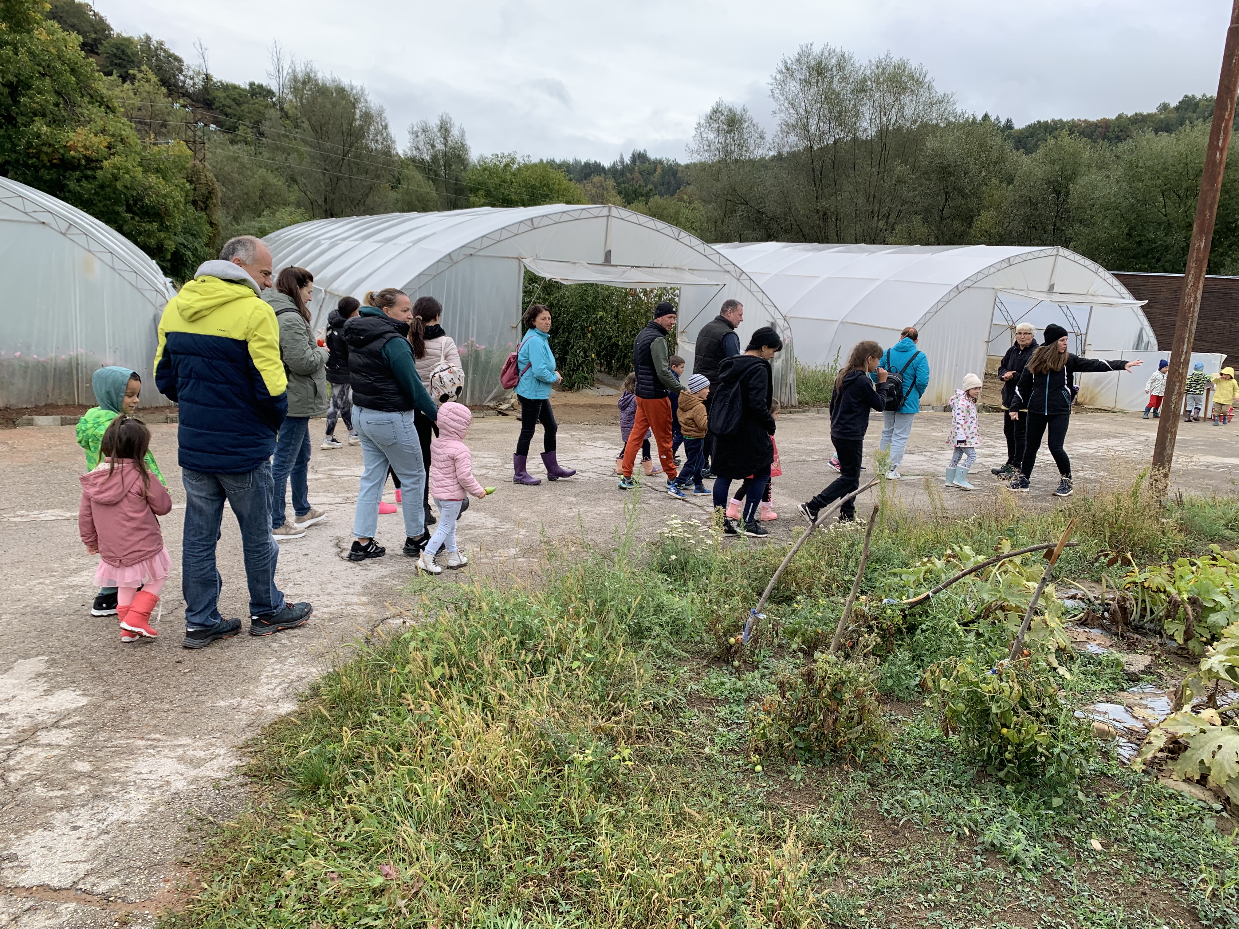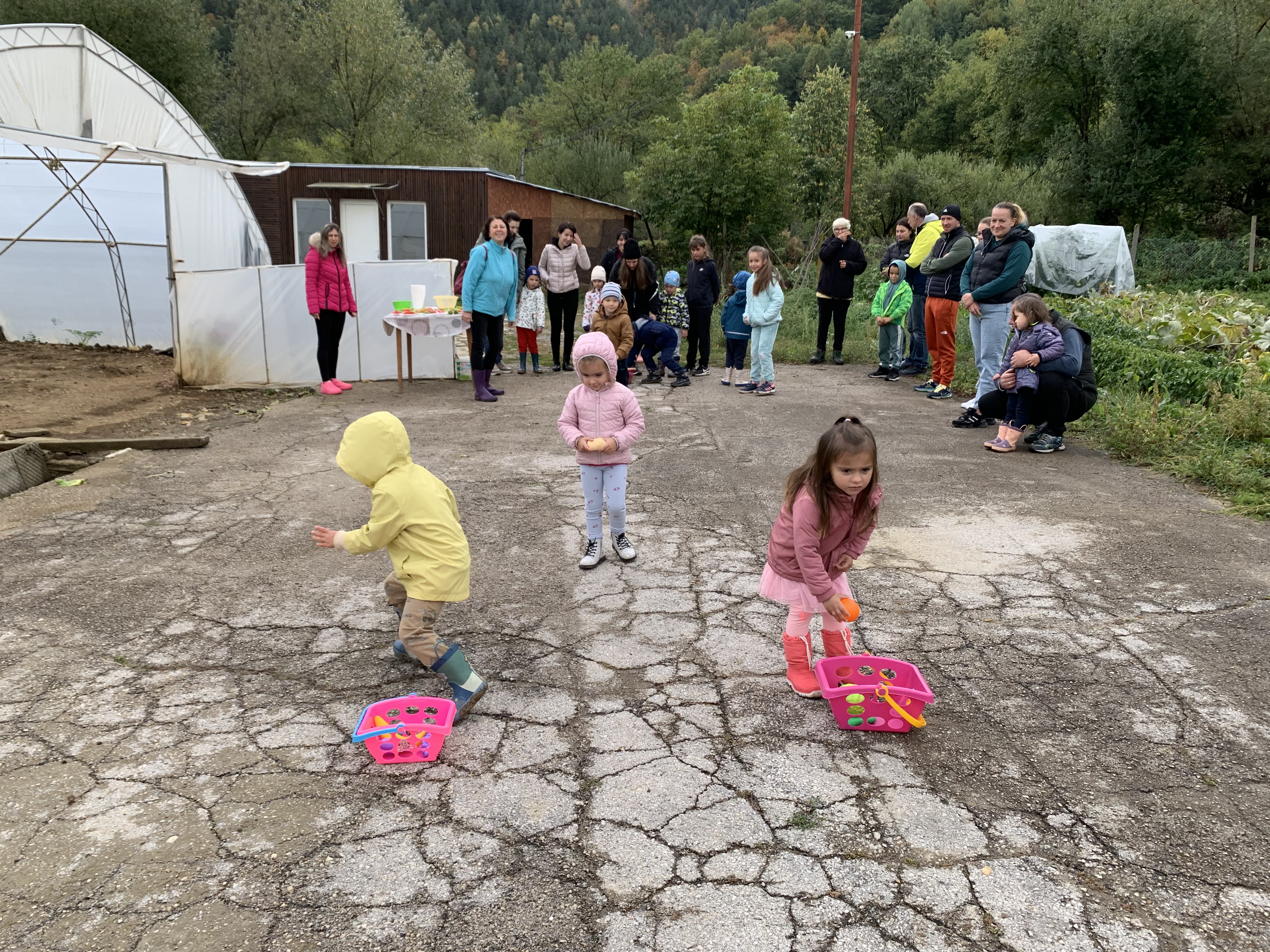 На 4 октомври малките Слънчовци и техните родители посетиха общинските екооранжерии. Децата научиха повече за професията „градинар“, инструментите, с които си служат градинарите и какви грижи полагат при отглеждане на растенията. Малчуганите с любопитство разгледаха четирите оранжерии и полето със зреещи тикви. Заедно с госпожа Мавродиева и госпожа Хасъмска изиграха играта „Зеленчукова щафета“ и благодариха на домакините с песен. Всяко дете опита от вкусните домати, чушки и краставици, които се отглеждат в оранжериите.