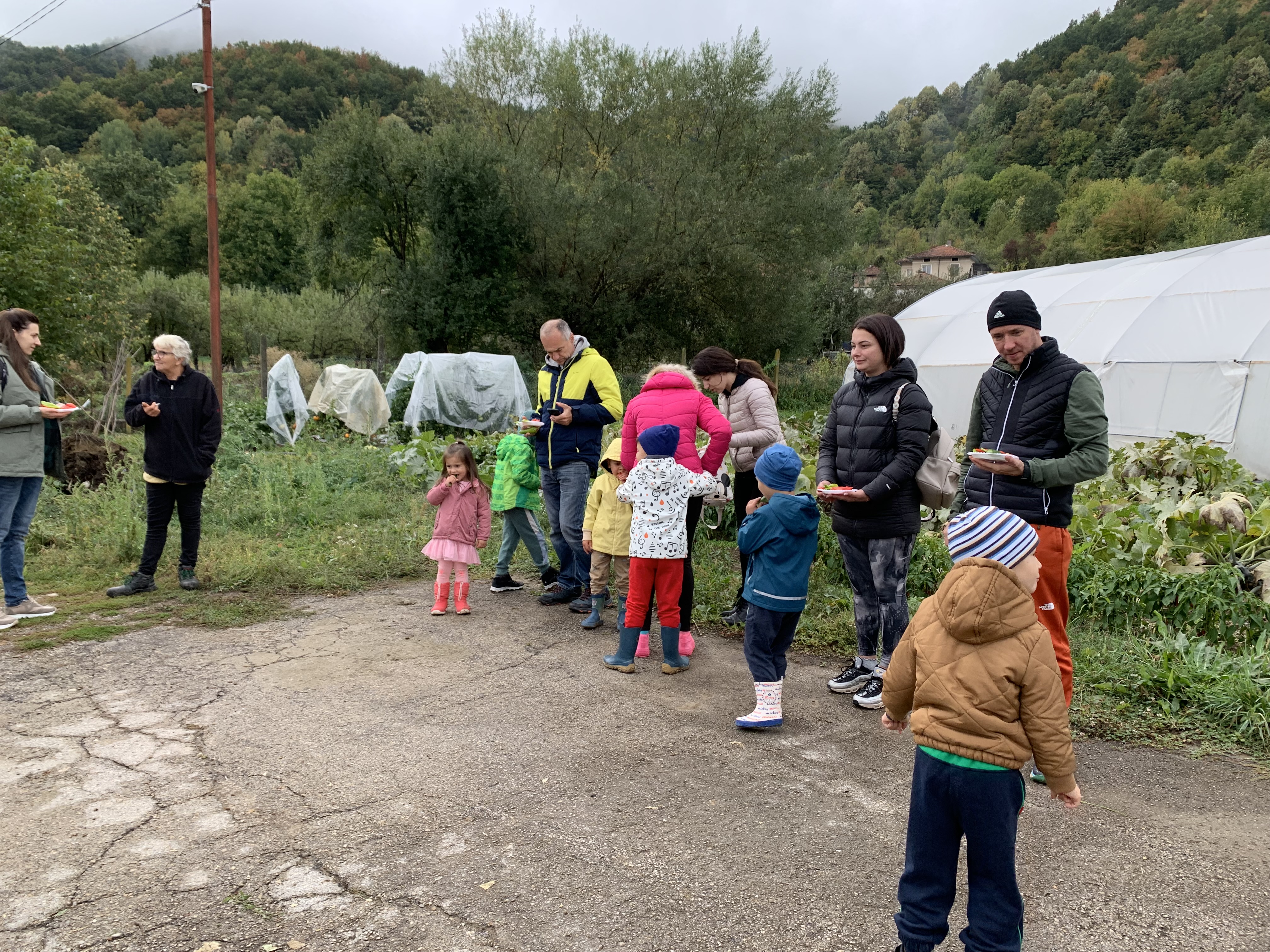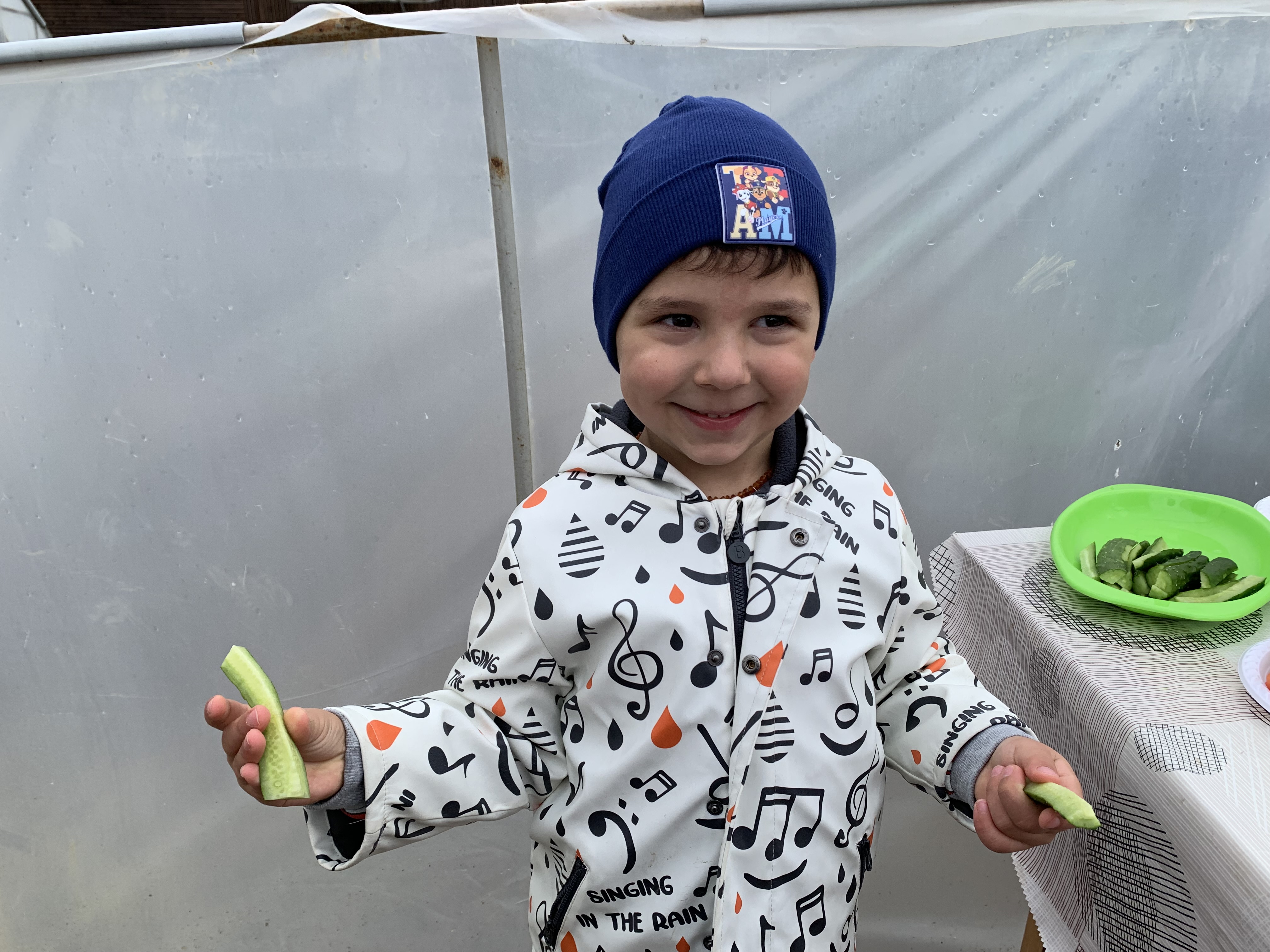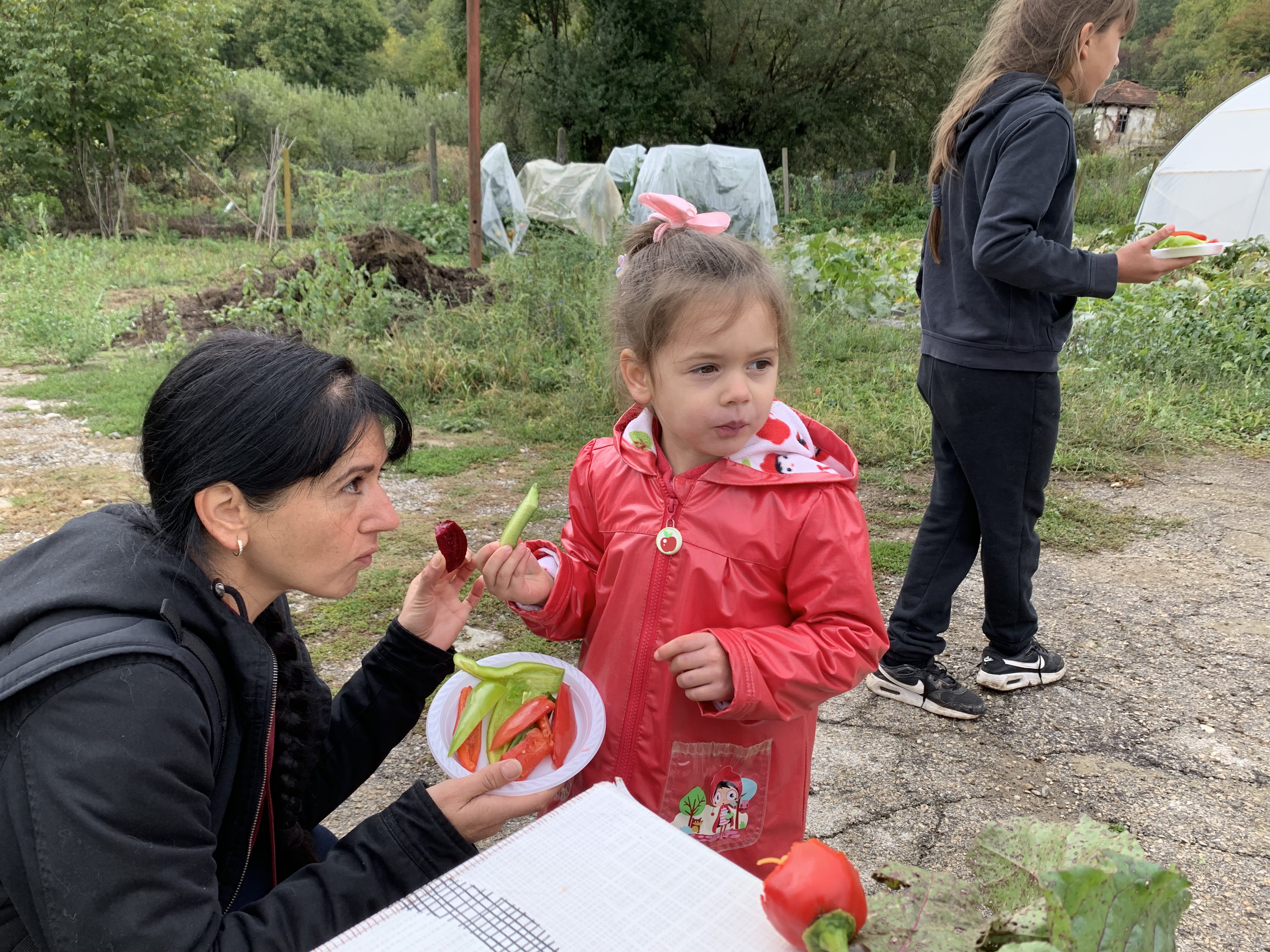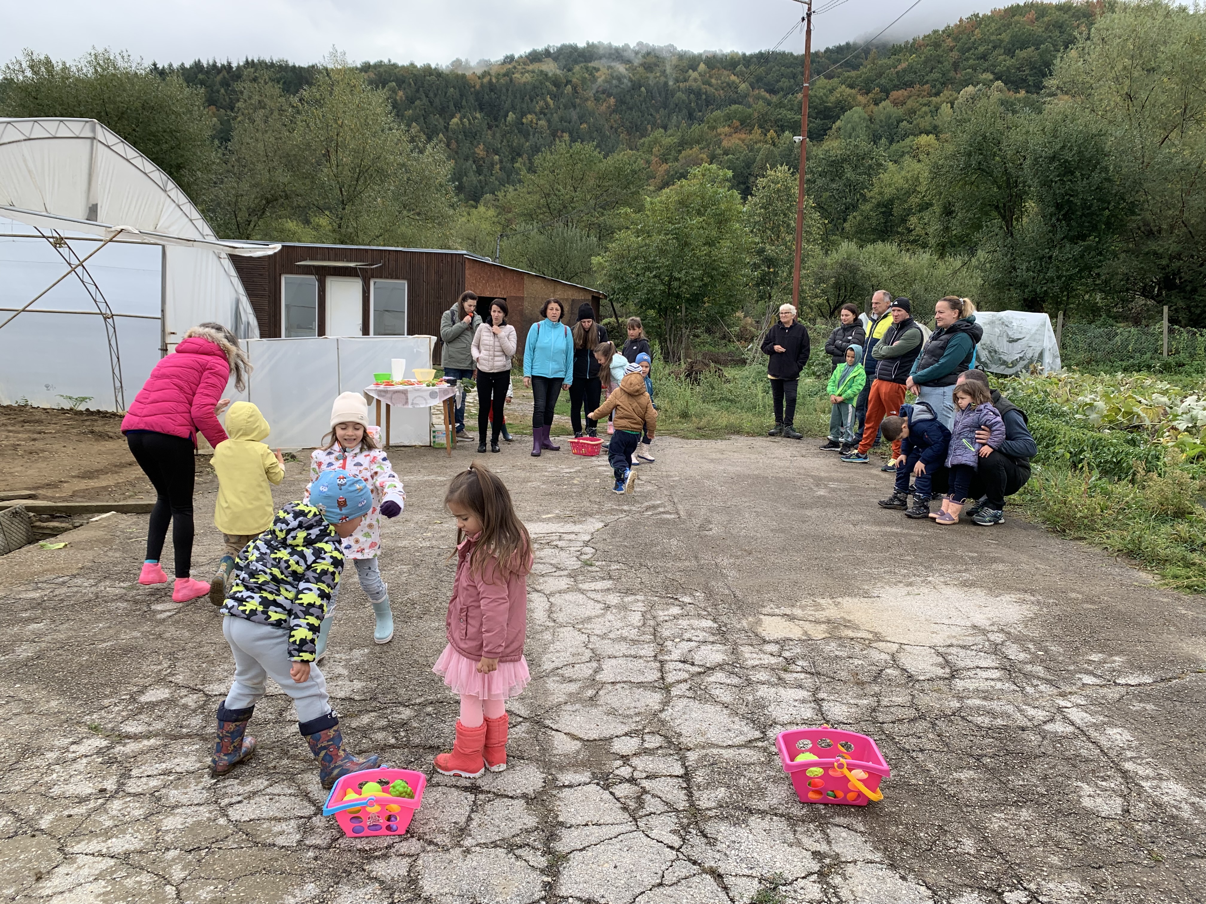На 4 октомври малките Слънчовци и техните родители посетиха общинските екооранжерии. Децата научиха повече за професията „градинар“, инструментите, с които си служат градинарите и какви грижи полагат при отглеждане на растенията. Малчуганите с любопитство разгледаха четирите оранжерии и полето със зреещи тикви. Заедно с госпожа Мавродиева и госпожа Хасъмска изиграха играта „Зеленчукова щафета“ и благодариха на домакините с песен. Всяко дете опита от вкусните домати, чушки и краставици, които се отглеждат в оранжериите.