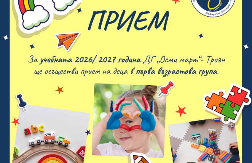 Прием на деца в ДГ „Осми март“ за учебната 2026/2027 година