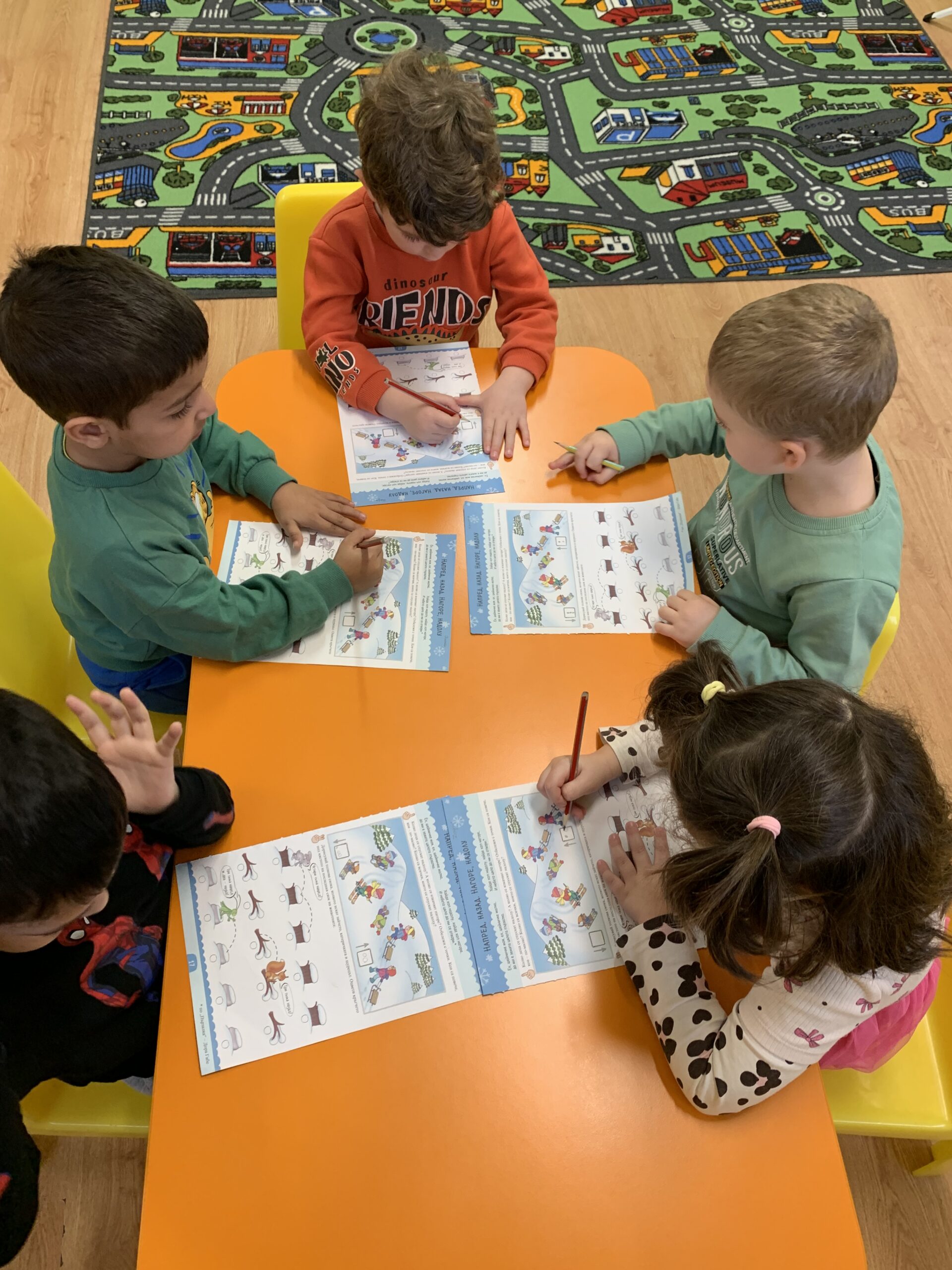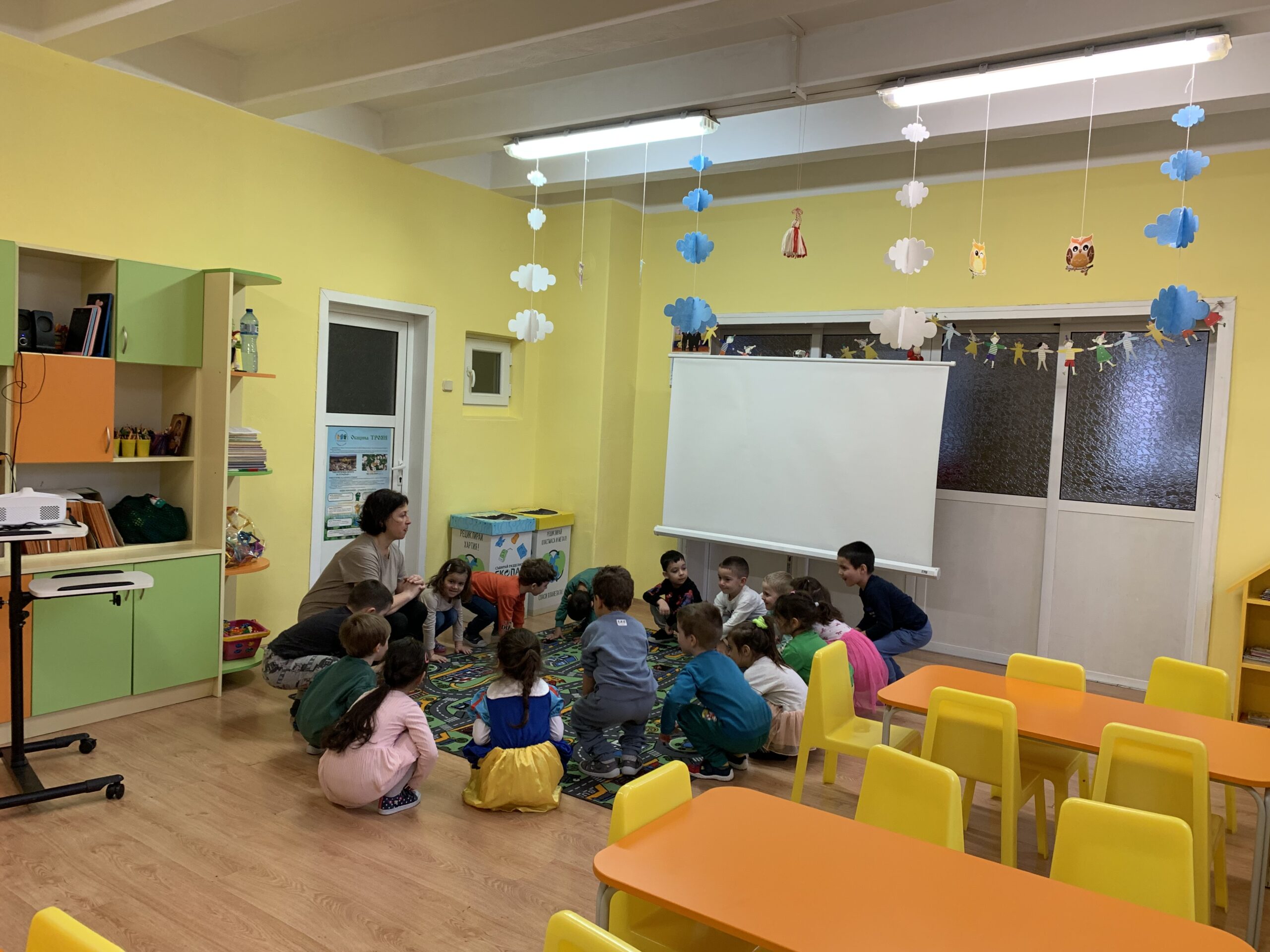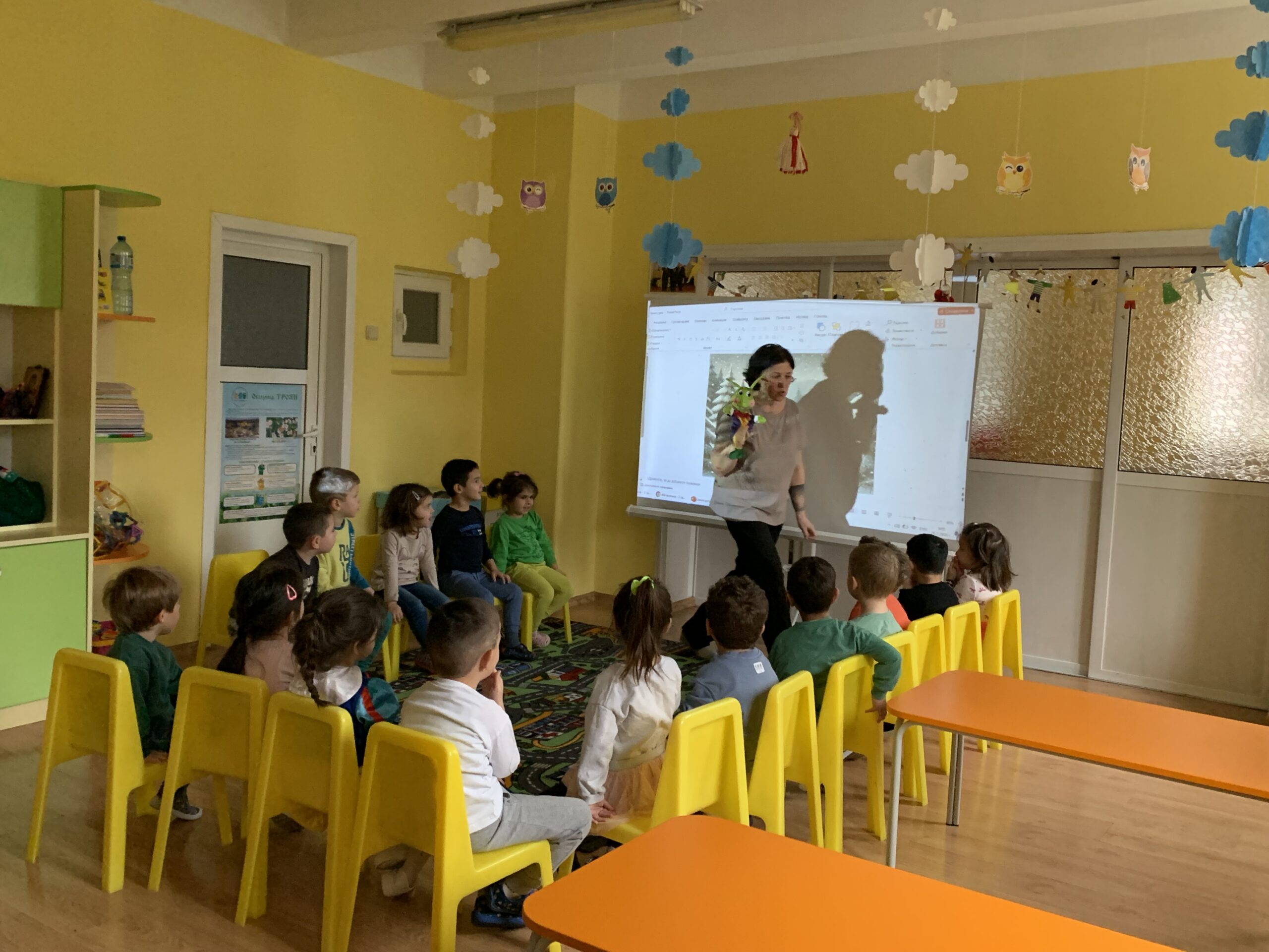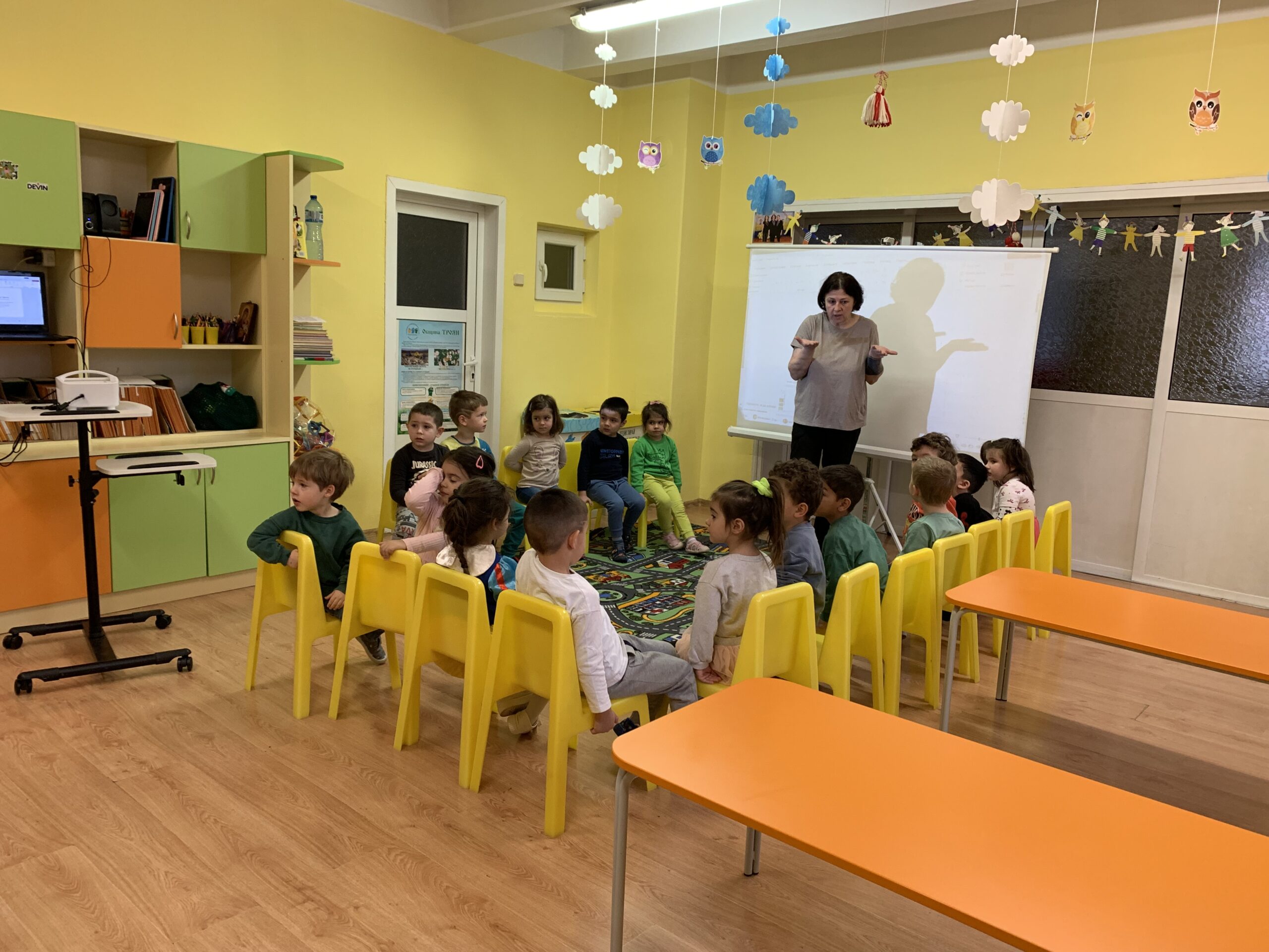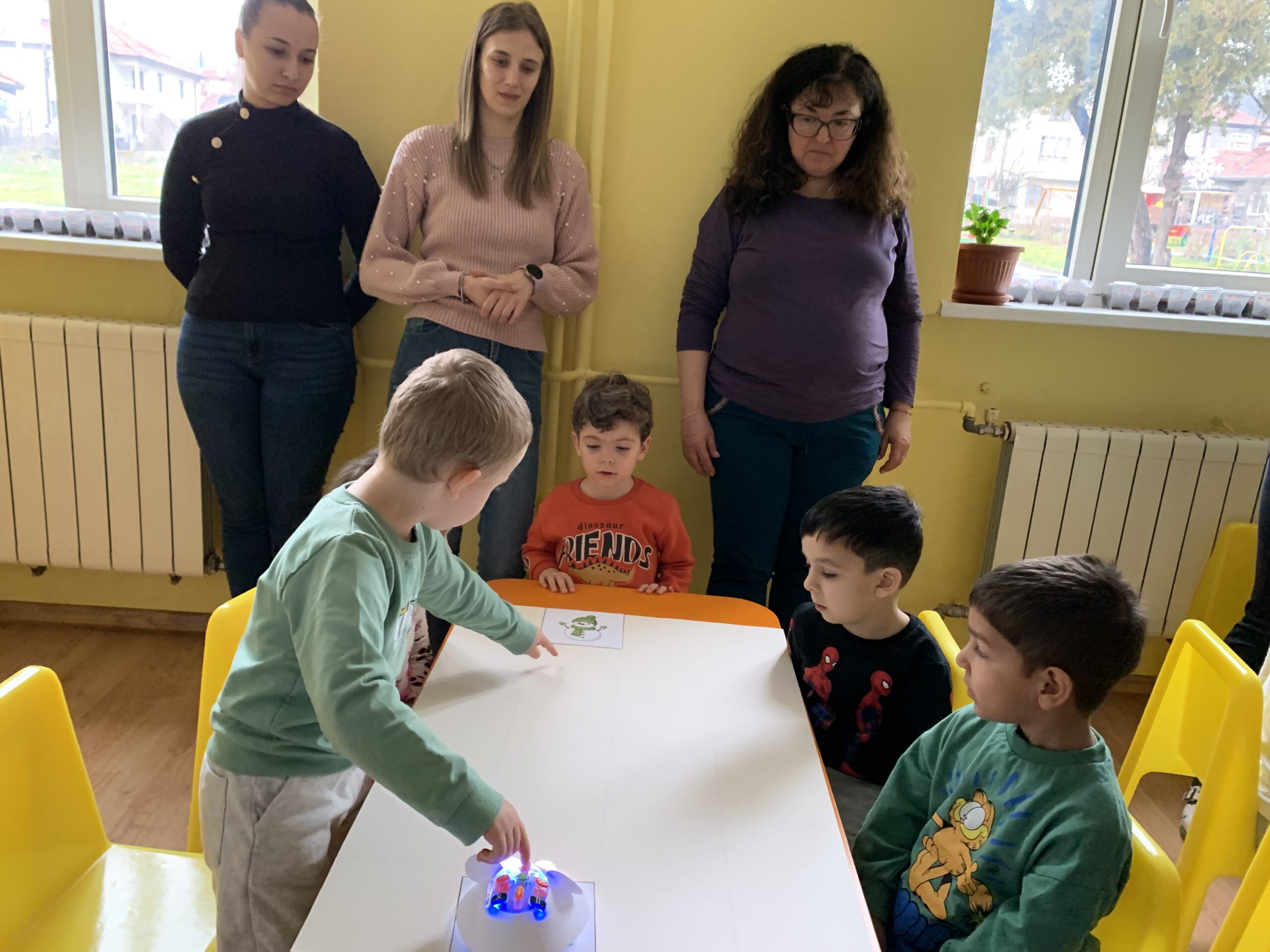 Слънчовците показаха знания и умения при използване на пространствените понятия напред – назад, нагоре – надолу. С желание се включиха в практически и игрови дейности за броене до пет и ориентиране в квадратна мрежа.