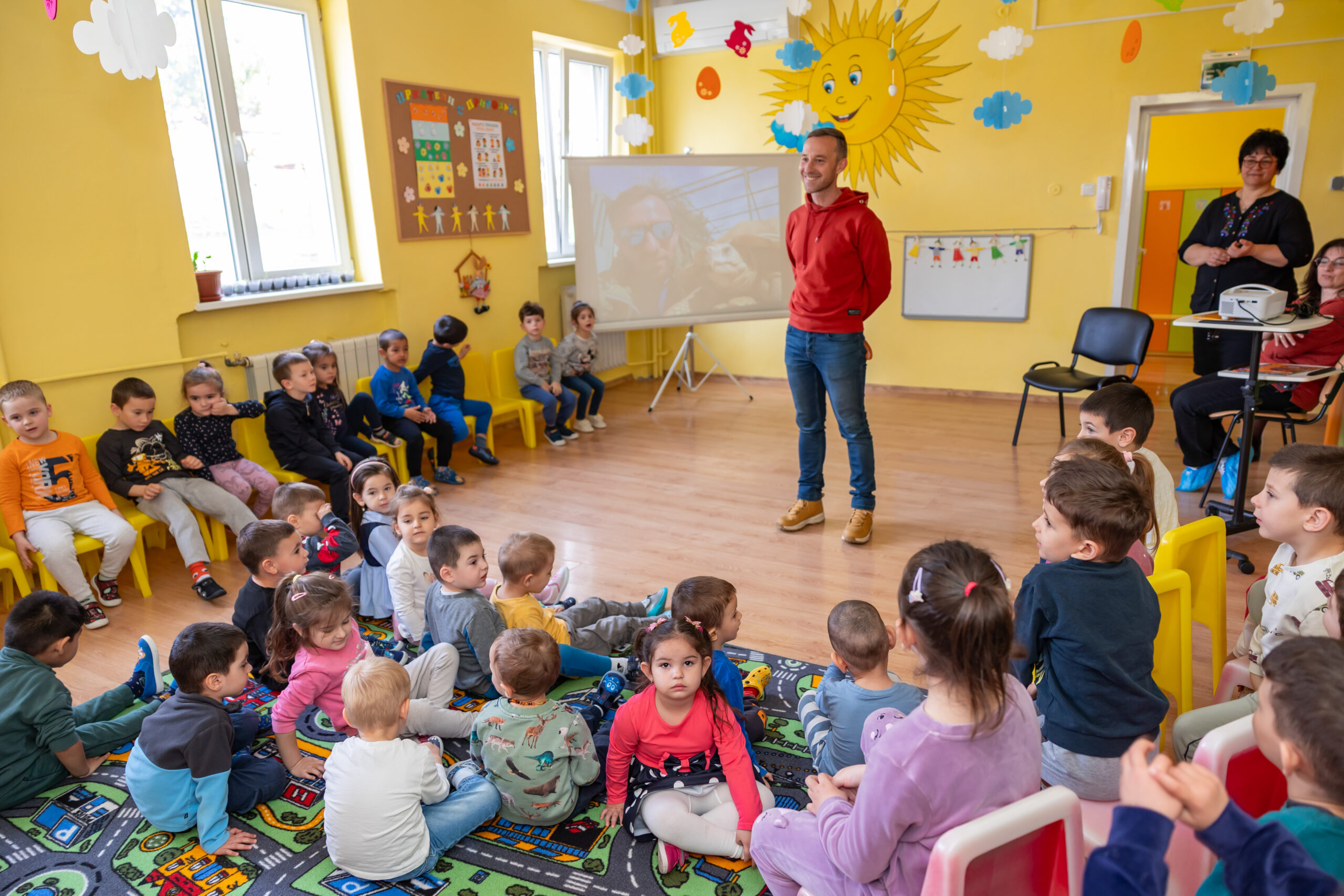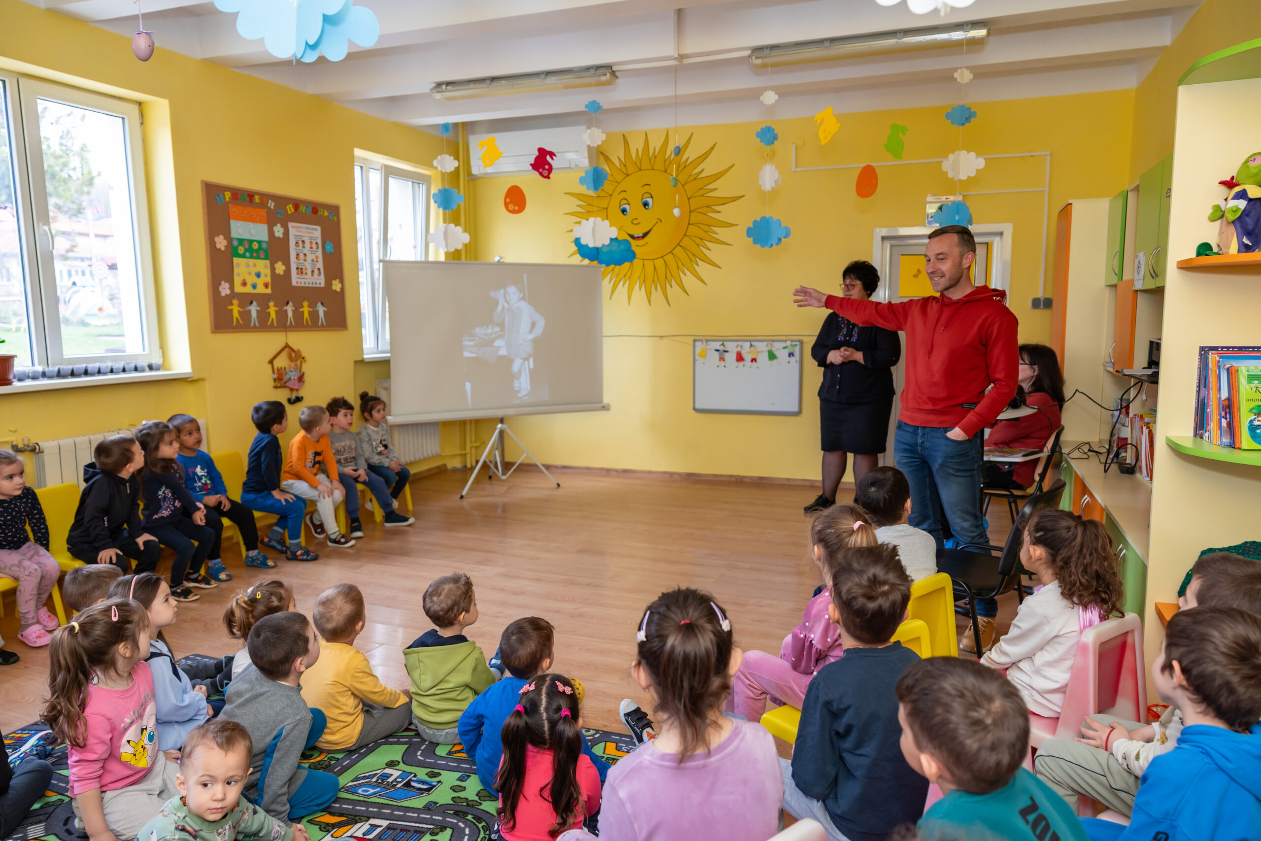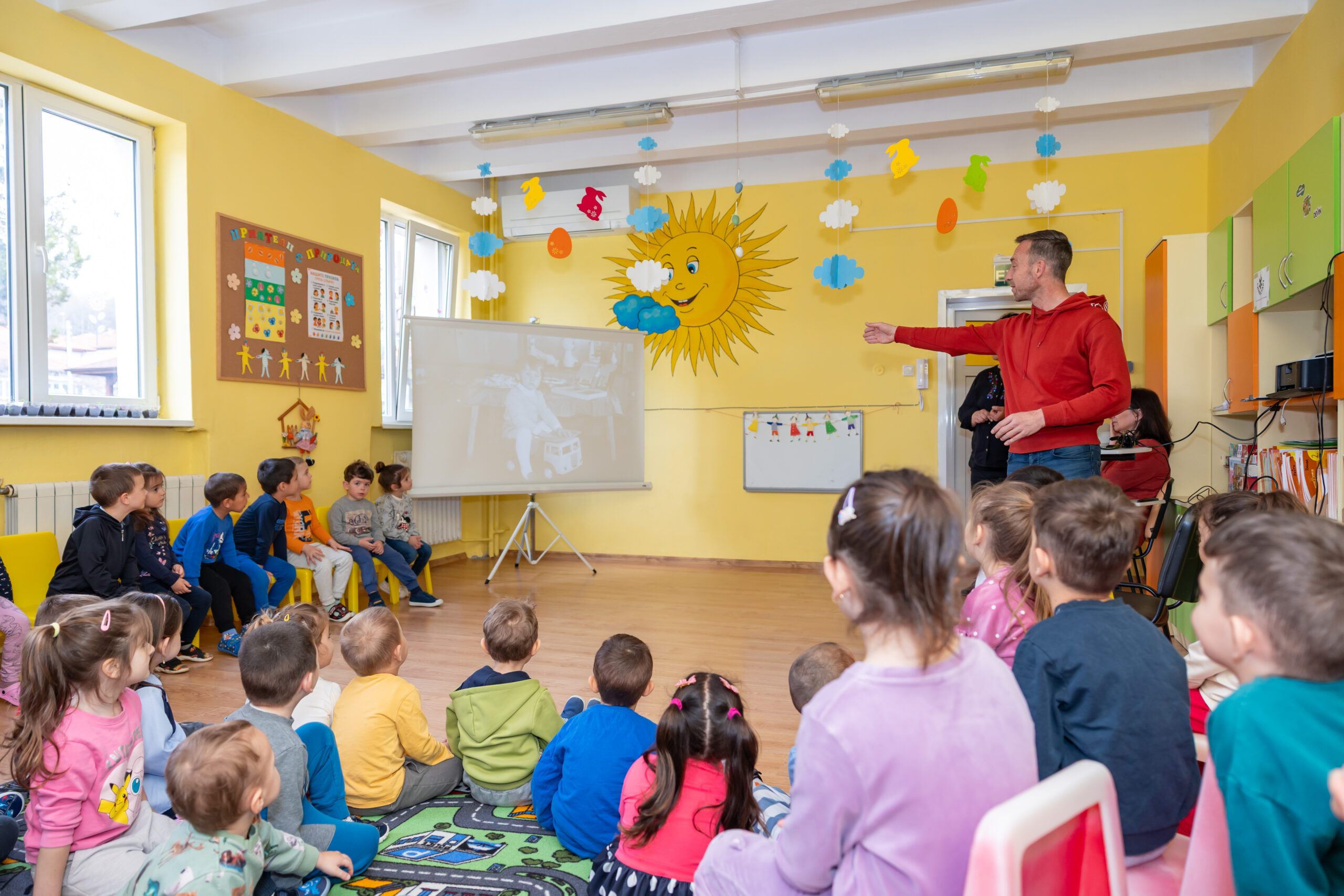 Разговорът на господин Василковски – Ники, с децата се превърна в пътуване във времето. Малчуганите научиха за детството и любимите приказки на своя гост, за пътешествията му до непознати страни, срещите с хора и животни и за професията „синоптик“. Специален поздрав за господин Василковски бяха песента „Шарената книжка“, музикалната игра „Дядовата ръкавичка“ и драматизацията „Горската аптека“. Забавни бяха думите на децата: „Дядо те гледа всяка вечер по новините“, „Виждал съм те по телевизията“, „Как си се качил на облаците?“…