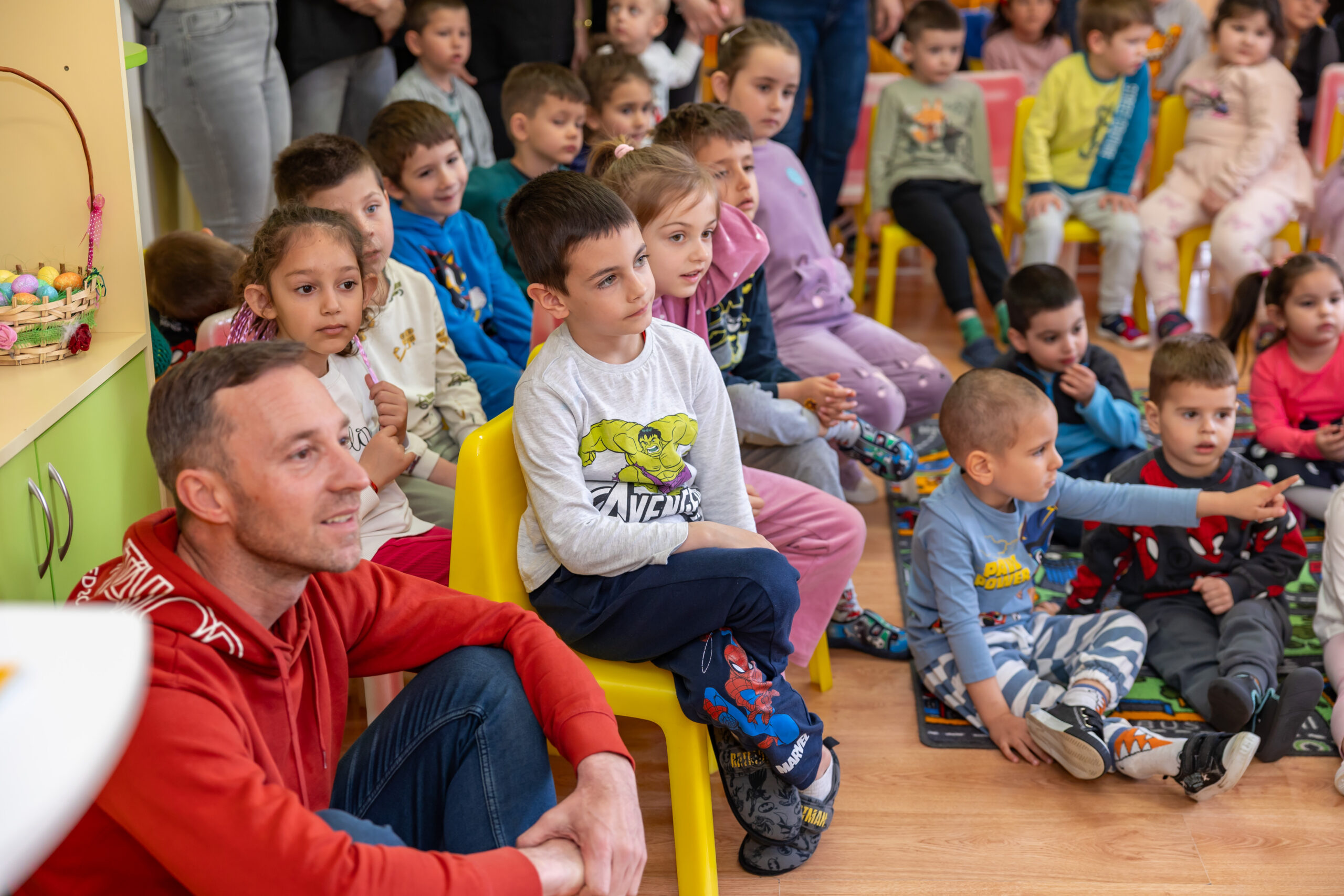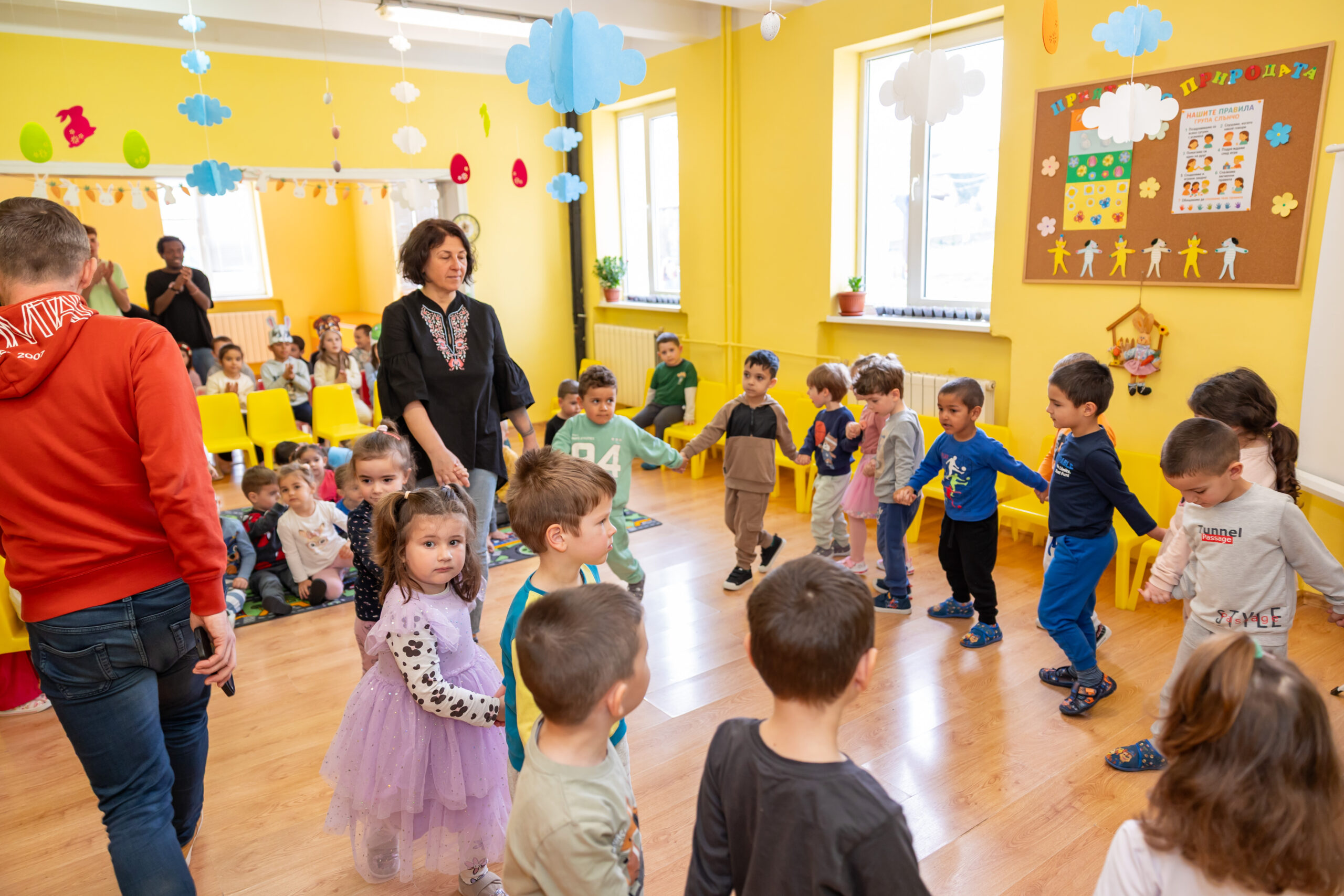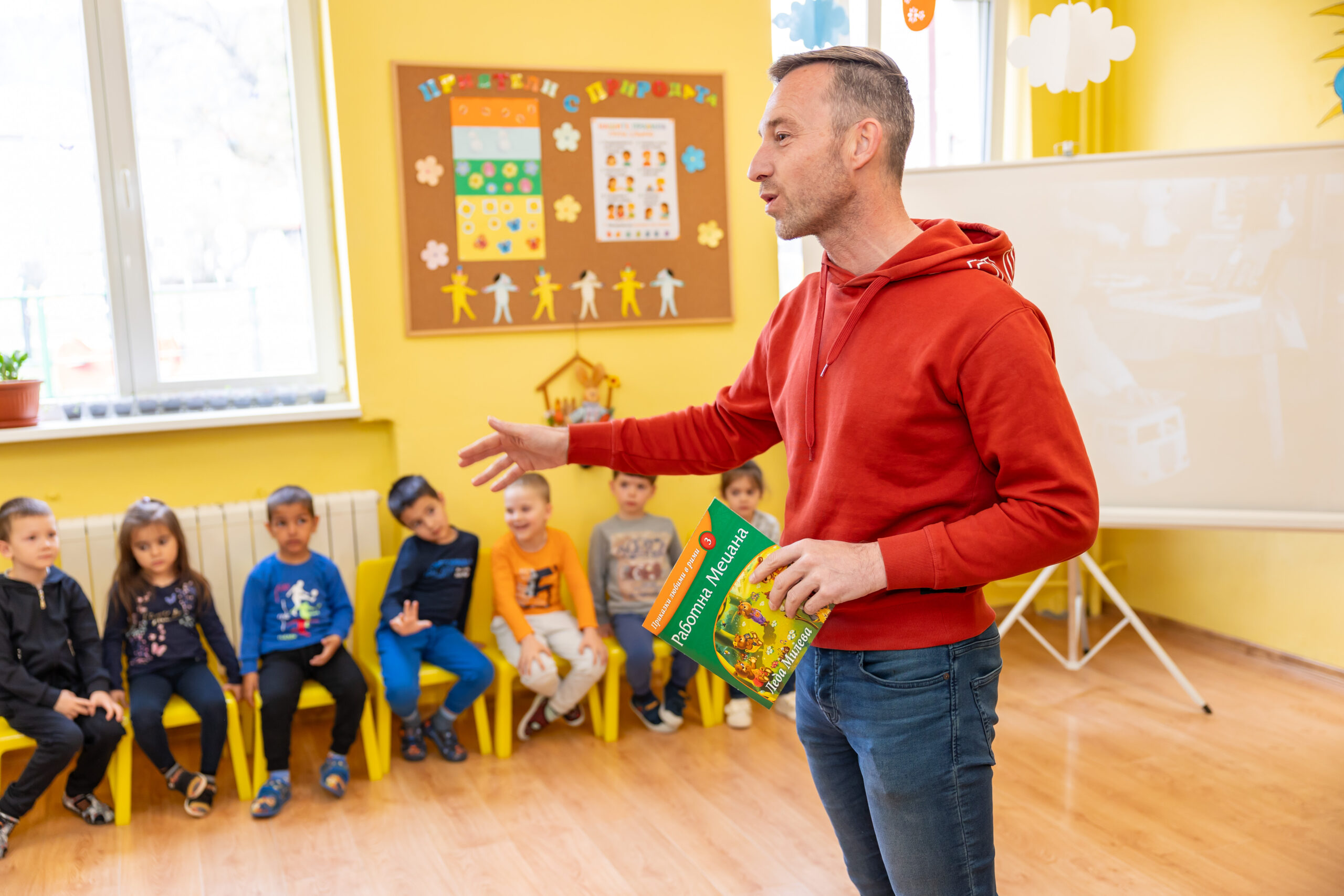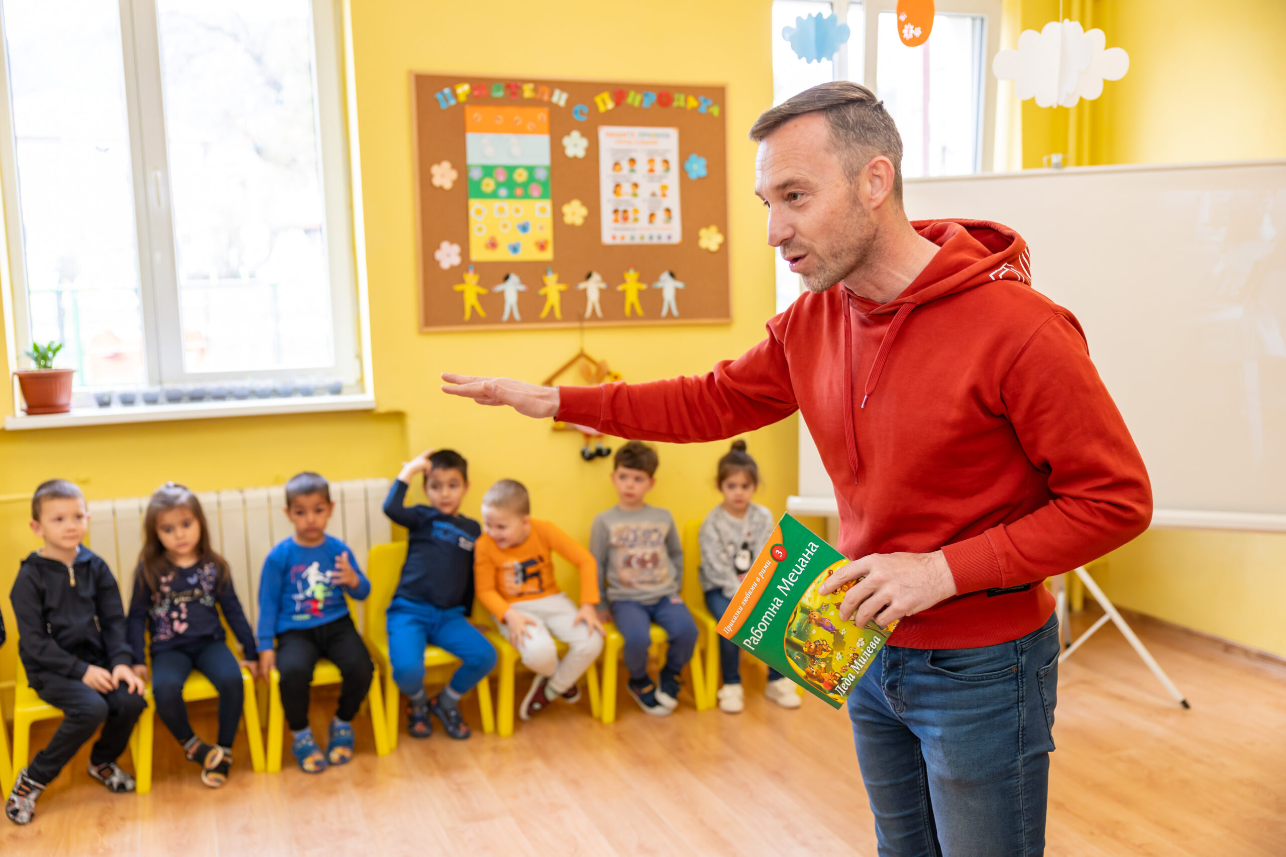Разговорът на господин Василковски – Ники, с децата се превърна в пътуване във времето. Малчуганите научиха за детството и любимите приказки на своя гост, за пътешествията му до непознати страни, срещите с хора и животни и за професията „синоптик“. Специален поздрав за господин Василковски бяха песента „Шарената книжка“, музикалната игра „Дядовата ръкавичка“ и драматизацията „Горската аптека“. Забавни бяха думите на децата: „Дядо те гледа всяка вечер по новините“, „Виждал съм те по телевизията“, „Как си се качил на облаците?“…